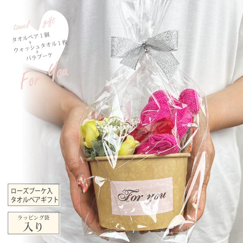 フラワーカップギフト タオルベア バラ ブーケ