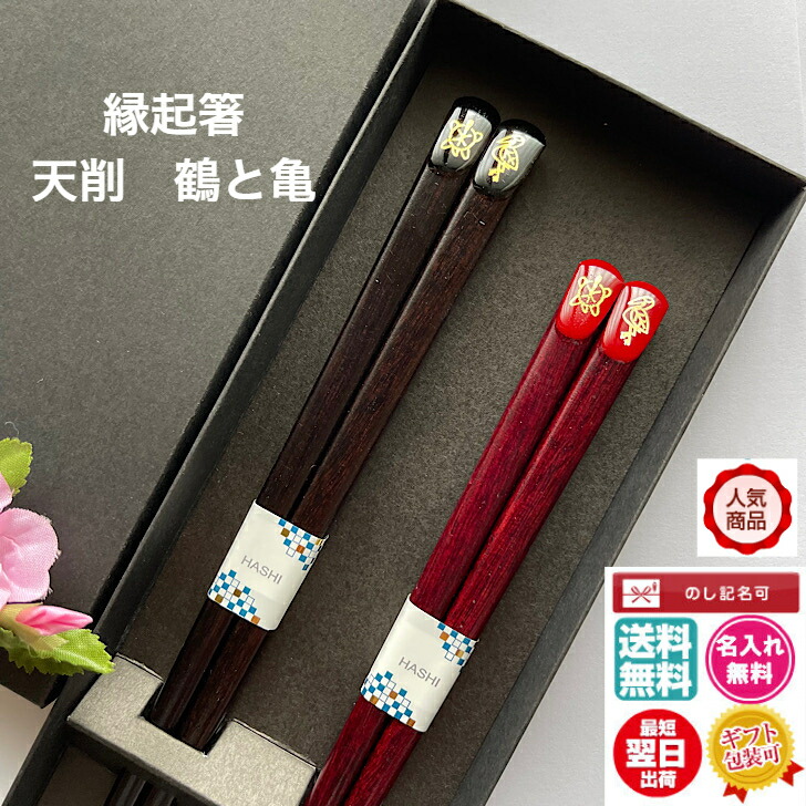 夫婦箸 名入れ ギフト 縁起箸 鶴と亀