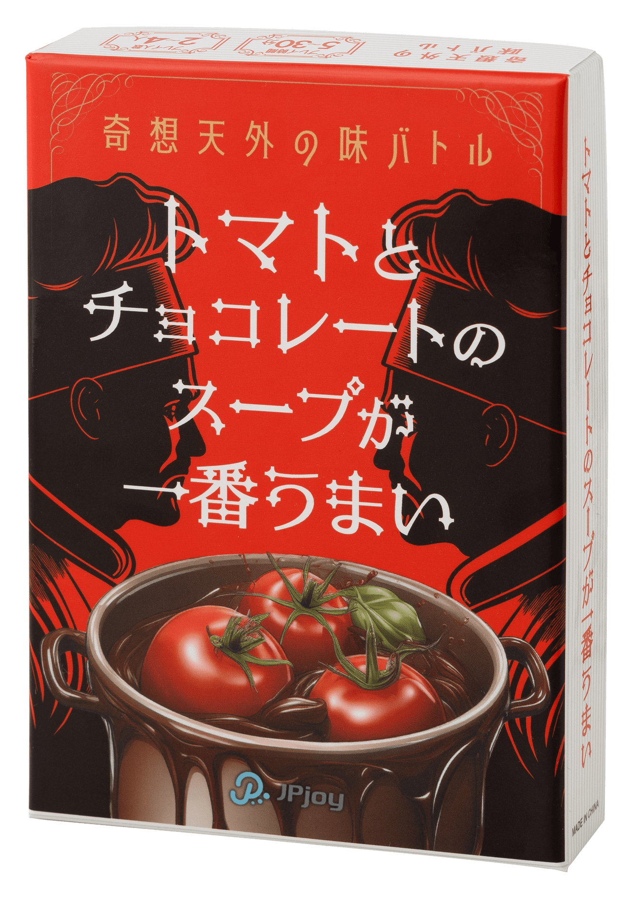 小学生以降におすすめなのが、こちらのカードゲーム「トマトとチョコレートのスープが1番うまい」。ランダムの食材カードと料理カードを1枚ずつ引いて、それっぽい料理を即興で作りプレゼンするゲーム。みんなでワイワイ楽しめること間違いナシ。