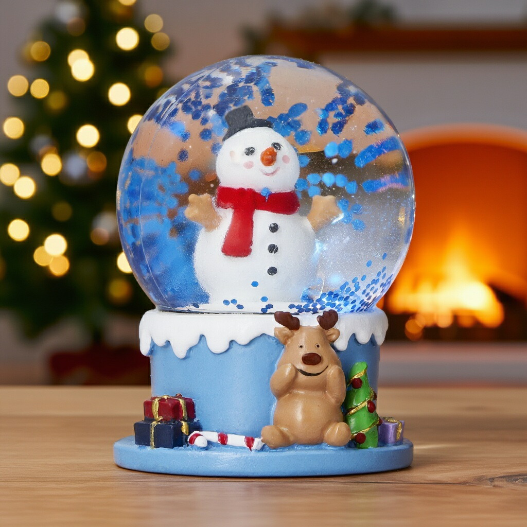 たとえばこちら、フライングタイガーのスノードームSサイズ。雪をイメージしたブルーカラー、なんとも言えない表情が愛らしい雪だるまとトナカイのスノードム。の500円以内で買えるならクオリティも十分です。