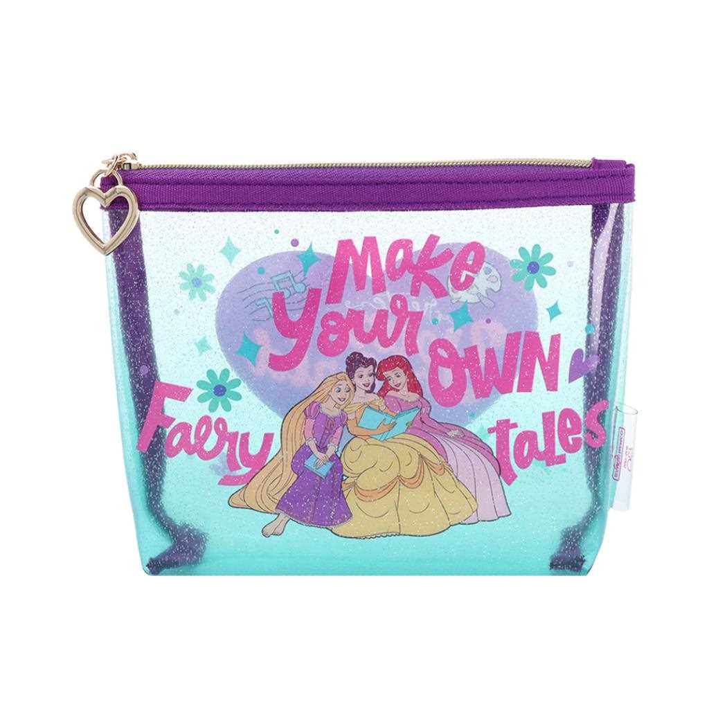 おすすめがこちらのラメクリアポーチ。手書きロゴとラメ入りの生地がかわいく、いかにもなアニメの絵柄はもう卒業!という女子でも使えるオシャレなデザイン。もちろん小さなお嬢さんにも大好きなお姫様の文具は喜んでもらえます。