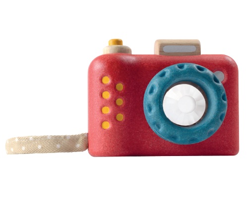 パパママのスマホカメラに興味津々な2歳前後の子どもたちには、”カメラごっこ”を楽しめる「マイファーストカメラ」をプレゼント。実際に撮影することはできませんが、レンズにガイドスコープが付いていたり、シャッターを押せたりと本格仕様なつくりになっています。