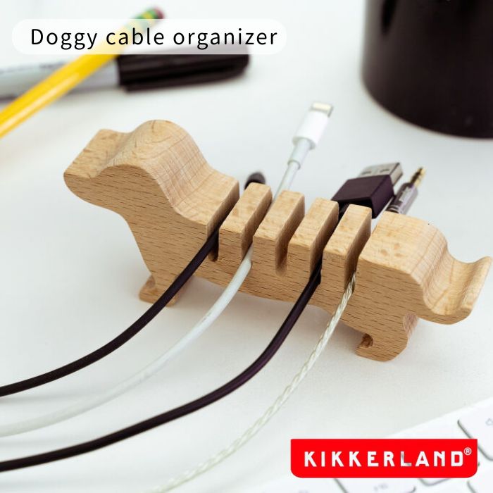 かわいいワンちゃんが、ごちゃごちゃしがちなケーブルをキャッチ。最大5本の標準ケーブルを収納できます。素材に天然木のブナを使用。動物好きな10代~30代へのプチギフトに!
