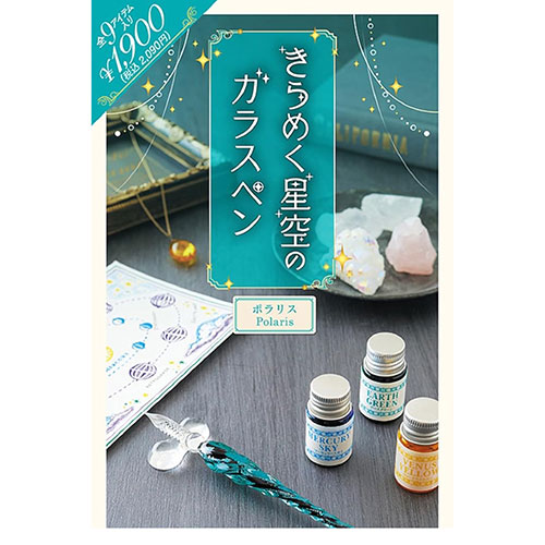 北極星をイメージした、翡翠色のガラスペンセット。ペン軸には繊細なガラス細工が施され、星屑のような輝きを放ちます。付属インクは5色入りで、どれも透き通る夜空をイメージしたカラー。2,000円前後のちょっとだけ贅沢な文房具は、自分へのご褒美にも欲しくなるアイテムです。