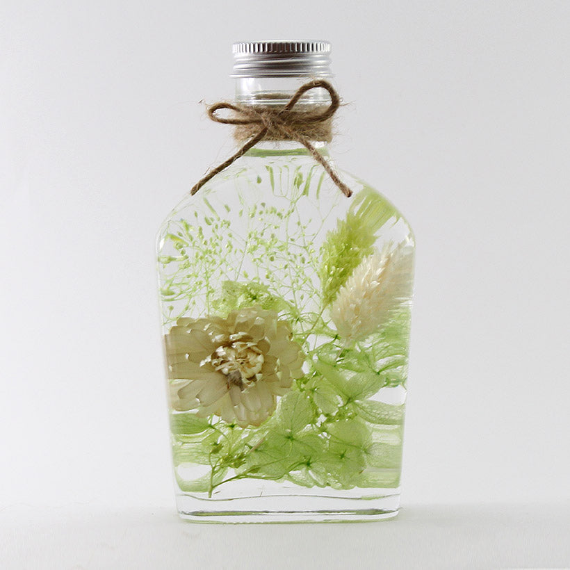 初心者向けのハーバリウムキット。必要な花材と説明書が揃っているので、誰でも簡単にハーバリウムが作れます。お花の入れ方によって、自分だけのデザインにできるのが嬉しい!爽やかなグリーンが、お部屋を優しい雰囲気にしてくれそう。今年の母の日はちょっと凝ったギフトに。