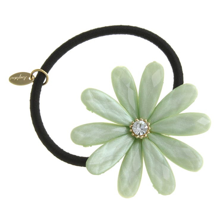 大きいデイジーが印象的なヘアゴム。顔周りを華やかにし、フェミニンな存在感を放ちます。表面に施されたカットが光を受けて輝き、一粒のラインストーンがアクセントに。複数のカラー展開があり、彼女に似合う雰囲気に合わせて選べますよ。花好きの彼女への、ちょっとしたサプライズプレゼントに。