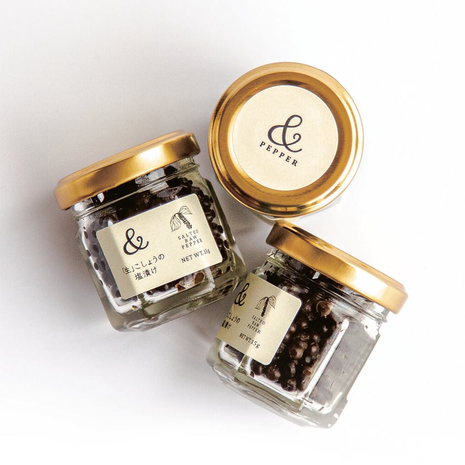 「&CAMBODIA」の生胡椒の塩漬け。原材の胡椒は、世界最大の名産地カンボジア産。伝統農法で育てた若い実をまだ柔らかいうちに収穫し、生のまま天日塩に漬け込んだ贅沢な逸品。ジューシーで刺激的なフレーバーが魅力です。料理にちょい足しすれば、極上の一皿に。