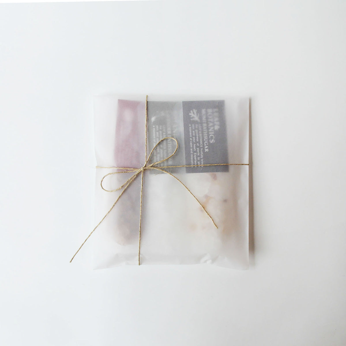 天然精油や植物エキスなど、自然の力を生かした製品づくりにこだわる「リーフ&ボタニクス」のギフトセット。保湿作用の高い氷砂糖、清浄作用のある重曹、精油を配合したバスシュガー3種詰め合わせ。忙しい女性に、心もお肌も潤うひとときをプレゼント。