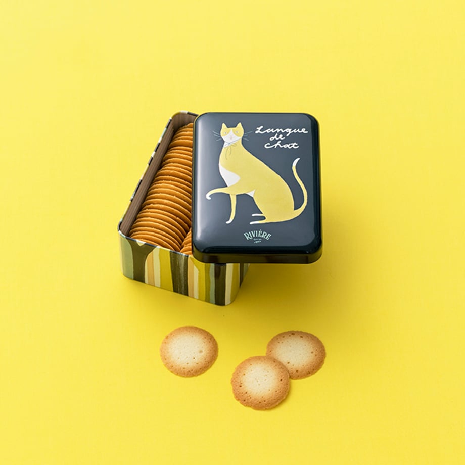 お菓子をプレゼントなら、おすすめは焼き菓子類。日持ちしやすく、予算1,000円~2,000円前後でギフト映えするアイテムが多いのがポイント。猫好きの上司向けなら「洋菓子店リビエール」のクッキー缶はいかが?