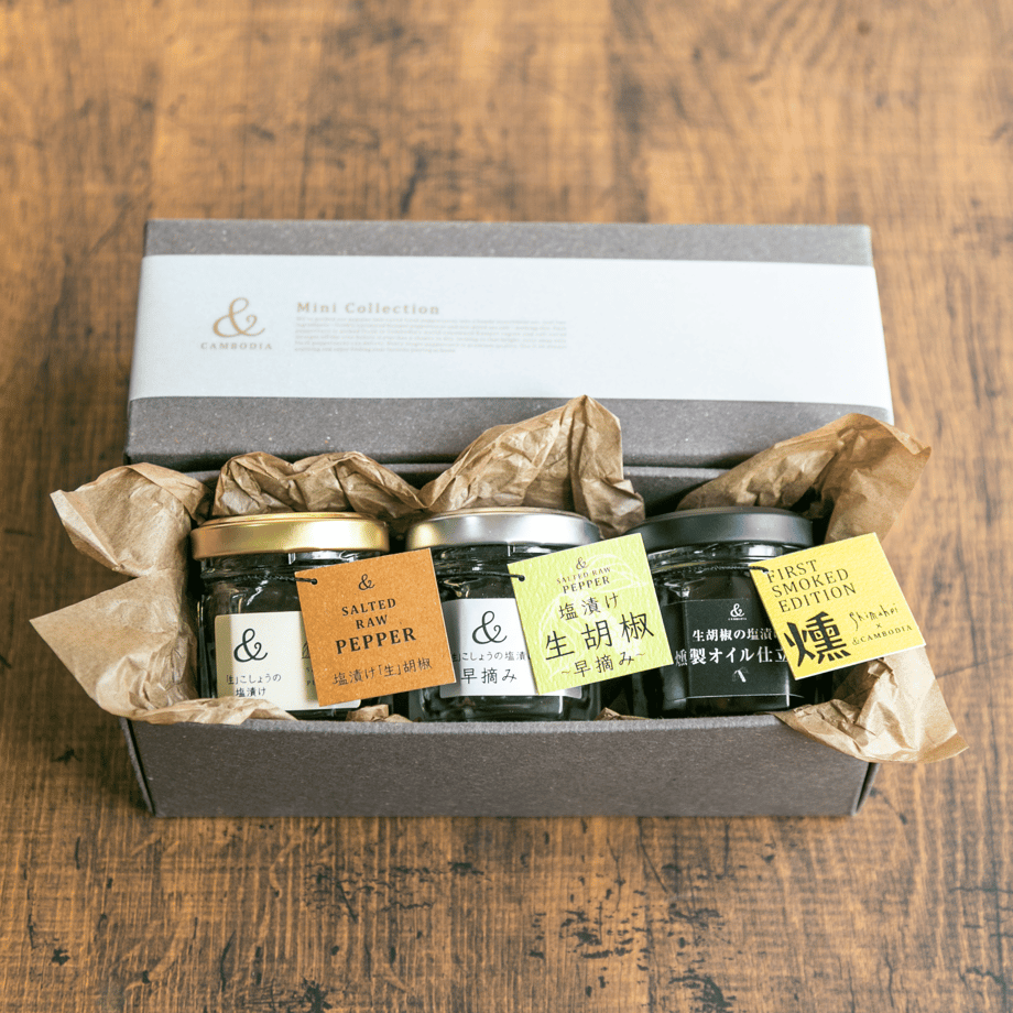 料理好き、食べ歩きが好きな上司には、あまりスーパーでは見かけない、ちょっと珍しい調味料をプレゼントするのもアリでしょう。例えば、収穫したての生胡椒粒と天然塩で作る「& CAMBODIA」の塩漬け。