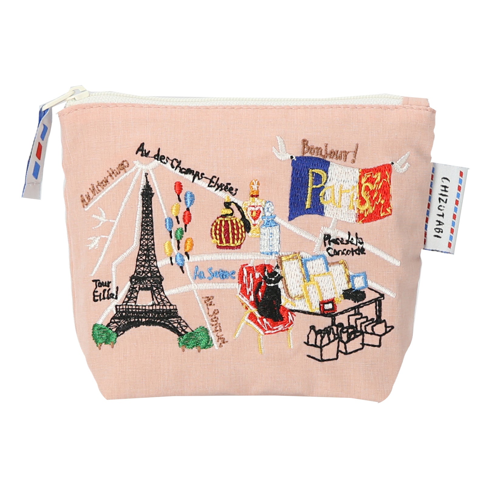 マップ風デザインに落とし込んだ世界の素敵な風景を刺繍で描く「CHIZUTABI」の商品。たっぷりマチで使いやすいサイズ。コチラの絵柄はパリの蚤の市がテーマ。手に取るだけで旅に出たくなりそう。