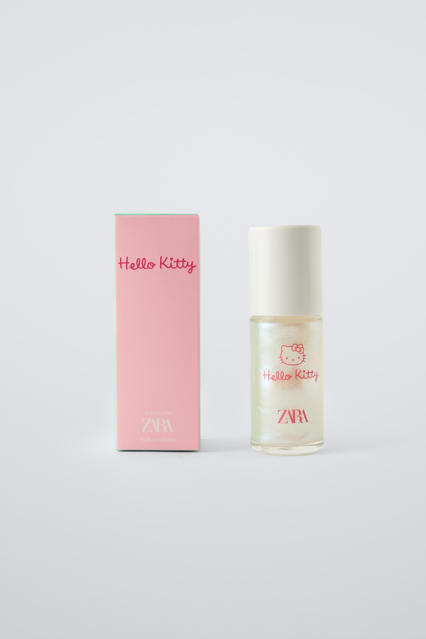 ZARAで人気のパフュームには、子供達が安全に使えるおしゃれでかわいいロールオンタイプのものも。ハローキティの香りのボディグリッター。手首に塗るだけでふわっといい香り。パッケージもとってもかわいいですね!