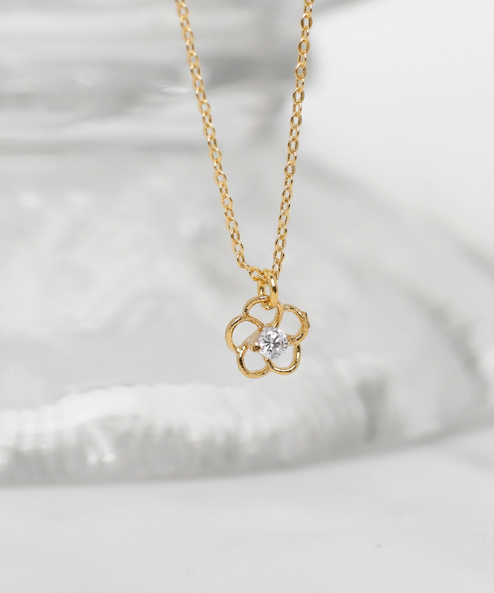 華奢なビジューフラワーがかわいいネックレス。若い女性に大人気のブランド「ANEMONE(アネモネ)」のアクセサリーなら、付き合いたてで好みをよく知らない彼女に贈っても安心。学生から社会人になっても使えそうな上品なデザインです。