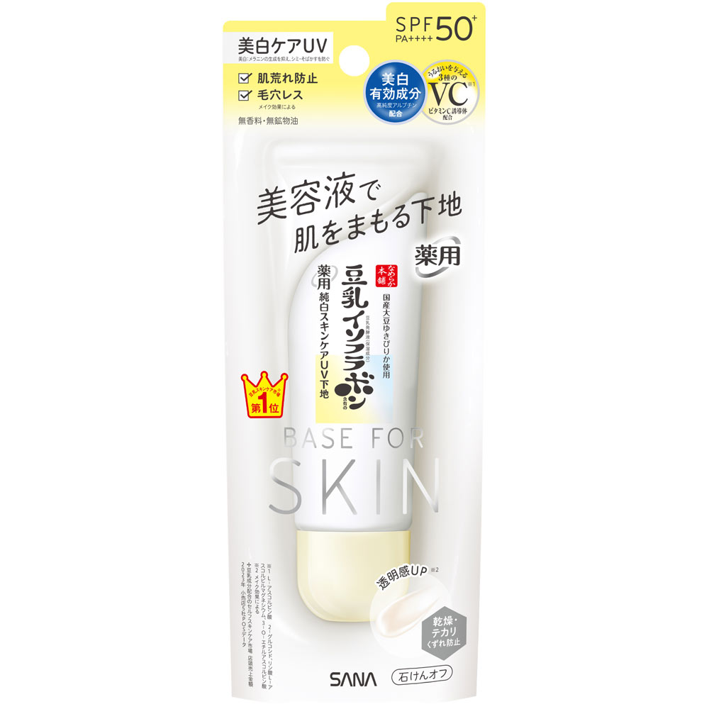 なめらか本舗の薬用美白スキンケアUV下地は、スキンケア生まれの肌を守るUV下地。美容液成分が82%配合されており、さらっとた伸びの良いテクスチャーです。洗顔後にこれ一本で潤い・ベースメイクがバッチリと忙しい女性にもピッタリな基礎化粧品アイテム。